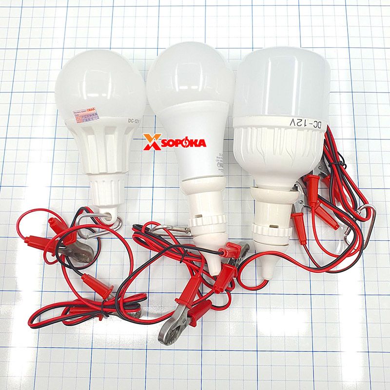 Bóng đèn LED dùng bình 12V SOPOKA liền dây kẹp, đui ren E27, dải công suất 9W – 12W – 18W, phù hợp chiếu sáng tại khu vực không có điện lưới, khu vực hay mất điện hoặc các hoạt động ngoài trời. Thiết kế kín, chống nước, chống côn trùng, sử dụng dây kẹp bình inox 304 và thân nhựa kỹ thuật chịu nhiệt, phù hợp dùng với bình ắc quy 12V trong gia đình, cửa hàng, trang trại, ghe tàu nhỏ hoặc điểm bán lưu động.