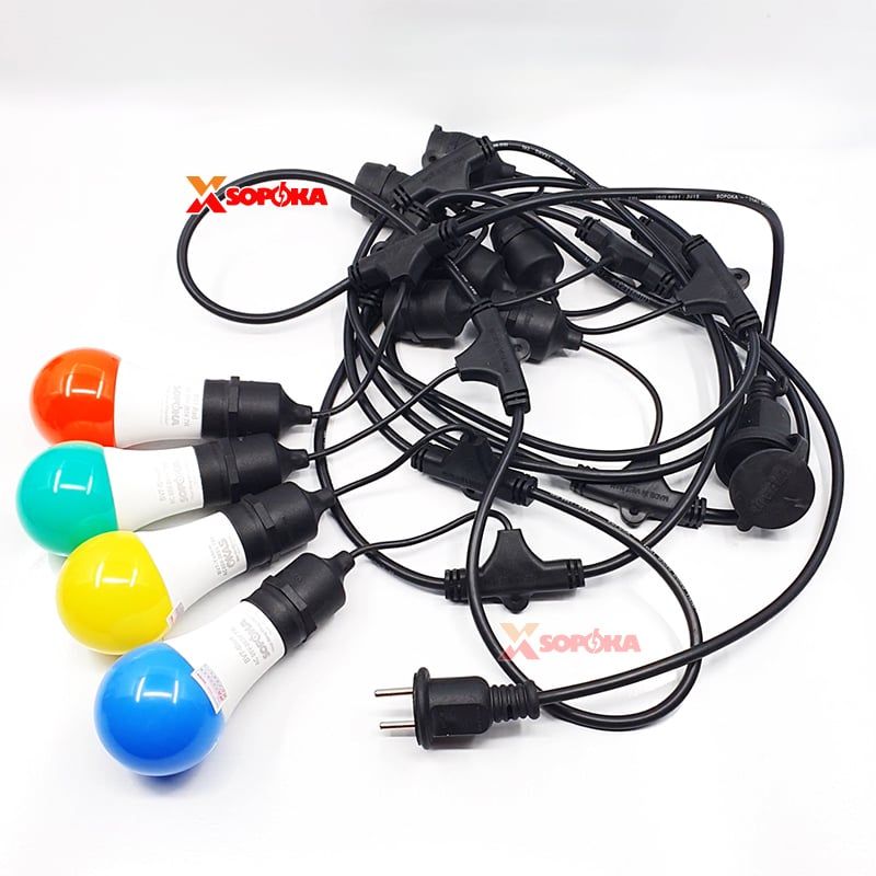 Dây đui bóng đèn trang trí 5m – 7.5m – 10m màu đen SOPOKA là bộ dây đui E27 chống thấm nước, phù hợp treo ngoài trời lẫn trong nhà. Mỗi đui chịu tải 0.5–50W, tổng tải một dây 1000W, khi đấu nối nhiều dây có thể lên tới 2200W, đáp ứng tốt nhu cầu trang trí ánh sáng cho sân vườn, quán cà phê, homestay, nhà hàng, tiệc cưới, lễ hội.